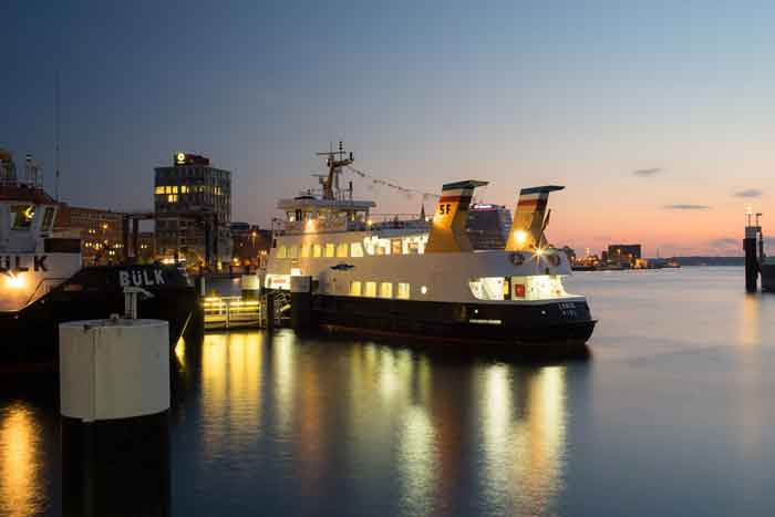 Abfahrt: letzte Fördefahrt F1 des Tages um 18:35 Uhr ab Anleger Kiel Bahnhofsbrücke