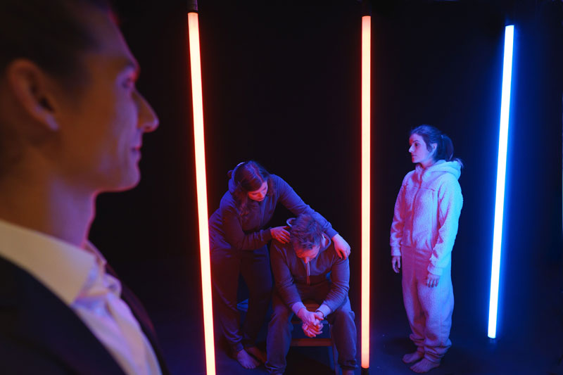 Sartres existenzanalytisches Drama ist ein Beziehungsspiel nach dem Leben. Es geht immer noch und immer wieder um Liebe, Sexualität, Anerkennung und Vertrauen und um die grundlegende Angst: die Angst davor, nicht mehr existent zu sein. Diese Inszenierung befragt den Platz der Hoffnungen und des Miteinanders.