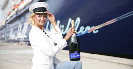 Auf so einem hohen Treppchen stand ich noch nie. Und ich muss sagen: Es war ein unglaublicher Moment, als ich in diesem traumhaften Kleid über dem Schiff schwebte und die Champagnerflasche auch zerbrach , so Franziska van Almsick. Große Freude auch bei TUI Cruises über die Indienststellung des zweiten Neubaus: Unser Konzept kommt an: Wir sind mit der Mein Schiff Flotte nachhaltig im deutschen Markt etabliert, die Auslastung lag in den letzten Jahren bei über 100 Prozent. Und auch die Nachfrage in diesem Jahr verläuft ausgezeichnet bei mittlerweile drei bzw. ab sofort vier Schiffen , sagt Wybcke Meier, CEO von TUI Cruises.