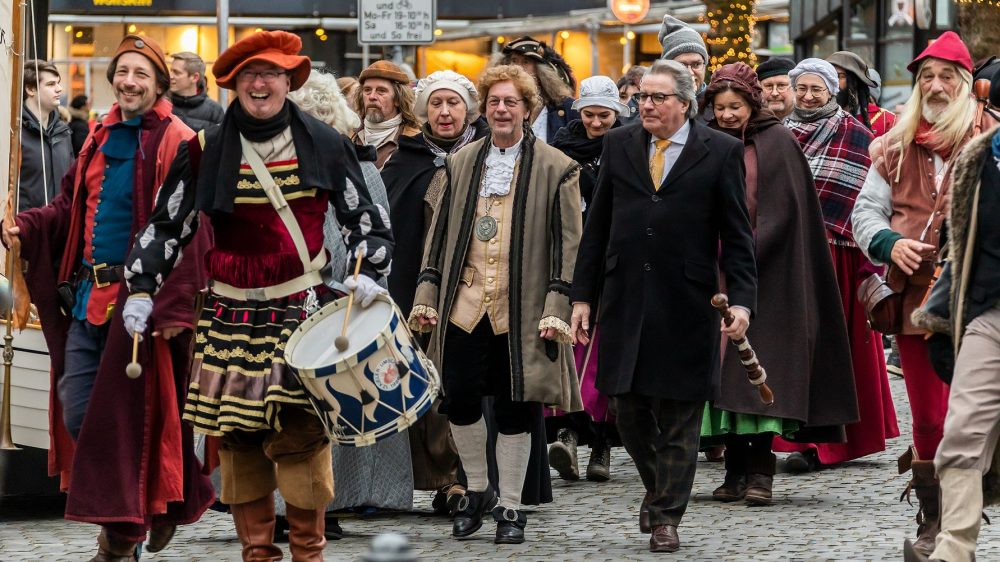 Neben dem feierlichen Empfang im Rathaus am Freitag, den 27. Februar um 13:00 Uhr, zu dem alle Bürger*innen eingeladen sind, erwarten die Besucher*innen auf dem Alten Markt vielseitige Highlights wie mittelalterliche Speisen und Getränke, Schabernack, Gaukelei und Sackpfeifengemetzel. Auf dem Holstenplatz bieten die „Geschichtswerkstatt Barockoko“ und weitere Handwerker*innen kostenlose Mitmachaktionen wie das „Kaltschmieden auf dem Amboss“ an. Außerdem bietet das Handwerkerzelt erneut ein vielseitiges Programm auf dem Holstenplatz: Bei Speis und Trank kann man hier dem Musikprogramm unterschiedlichster Musiker*innen lauschen und den Handwerksgesellen bei ihrer Arbeit zuschauen. Wer Lust auf ein Piratenspektakel hat, ist auf dem Asmus-Bremer-Platz genau richtig. Hier sorgen die Piraten von „Klar zum Entern!“ und die Märchenerzählerin Octavia für eine spannende Atmosphäre. Außerdem rundet „Der mit dem grünen Hut“ das bunte Programm auf dem Platz mit Spaß und Bewegung beim beliebten Mitmach-Zirkus ab.