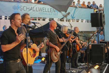Neben Santiano begeisterten weitere Vollblutmusiker das Publikum. Ob Pohlmann mit seinen leisen und lauten Tönen oder die Brüder Wingenfelder, die ihre eigenen Hits und Fury in the SlaughterhouseKlassiker auf der Bühne zeigten. Ihrer Kreativität ließen auch sie bei der eigens komponierten Schallwellen-Hymne freien Lauf: „Zusammen mit 25 Workshop-Teilnehmern haben wir in gut drei Stunden einen Text entworfen und das Lied eingesungen. Die Nähe zwischen Publikum und Künstlern haben hier solche Dinge möglich gemacht. Wirklich etwas Besonderes.“ Auch Fools Garden brachte die Gäste mit ihrem „Lemon Tree“ zum Mitsingen. Für die Pforzheimer war die Event-Kreuzfahrt ein musikalischer Hochgenuss: „Viele tolle Kollegen waren dabei und es war allgemein eine entspannte Atmosphäre. Wir sind in Oslo und Kopenhagen eigentlich gar nicht von Bord, weil wir uns so wohl gefühlt haben“, sagt Peter Freudenthaler, Sänger der Band Fools Garden.