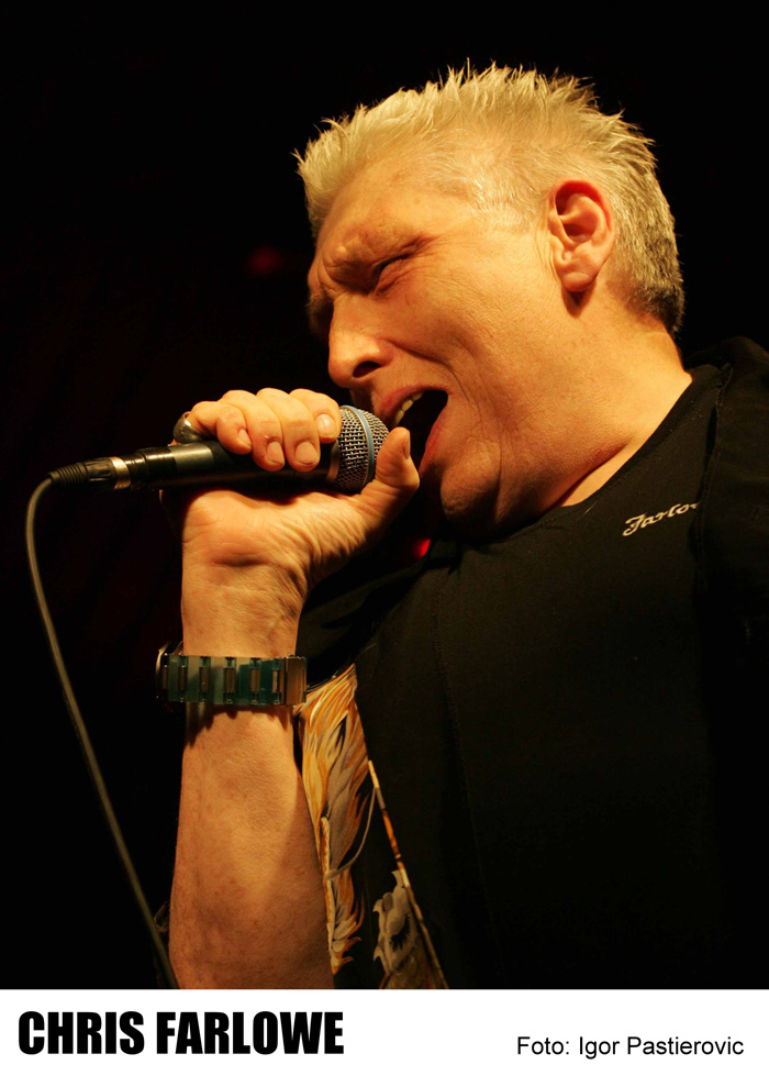 Die Stimme von Chris Farlowe erregte erstmals Mitte der Sechziger Aufmerksamkeit, als er mit dem von Mick Jagger & Keith Richards produzierten Rolling Stones Song “Out Of Time“, Platz 1 sämtlicher Hitparaden in Europa eroberte. Der allseits bekannte “Blues-Pavarotti“ (Good Times) war Sänger der Progressiv-Giganten Atomic Rooster und Colosseum deren Doppelalbum „Colosseum Live“ auch heute noch getrost als Juwel der Rockgeschichte bezeichnen kann. 1982 holte ihn Jimmy Page (Led Zeppelin) für die Filmusik zu dem Charles Bronson Film “Death Wish II“ & und zu dessen Soloalbum “Outrider“. Seit Mitte der 80er ist Chris mit eigener Band auf Tour, übernimmt jedoch immer wieder gerne Gastangebote bei anderen Formationen an – u.a. bei Van Morrison, den R&B Allstars und vom Ex-Bandkumpel Clem Clempson. 1994 war Chris Farlowe Teil des groß angelegten Colosseum Comebacks bis zum Abschiedskonzert der Supergroup um Jon Hiseman im Februar 2015 im legendären Shepherd ́s Bush Empire in London. Als R&B Entertainer alter Schule versteht er es wie kein anderer Delta, Opera und New Orleans Scatgesang zu kombinieren.